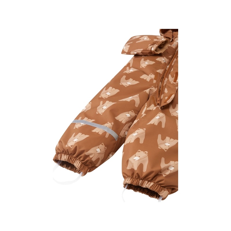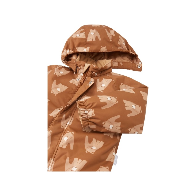 The toddler's Tienoot padded overalls are designed for children's winter play. Its waterproof fabric and taped main seams help keep your child comfortable. The durable material and water and dirt-repellent surface are helpful in everyday life. Thanks to the warm padding and breathable material, your child will not sweat too much. This Reima overall has added thermal insulation at the back for sitting in the snow. The smooth lining, elastic cuffs and leg openings and a long zipper make it easy to put on. The secure, removable hood and elastic waistband at the back improve the fit. Removable, durable silicone leg loops keep the legs in place.