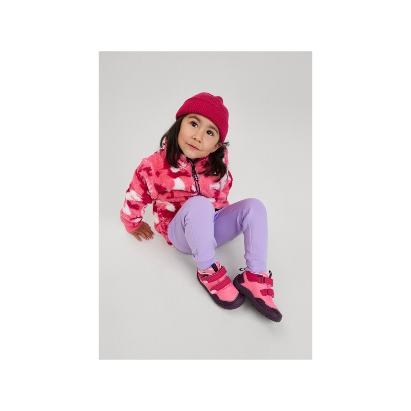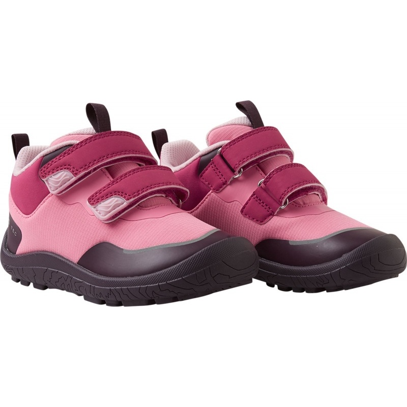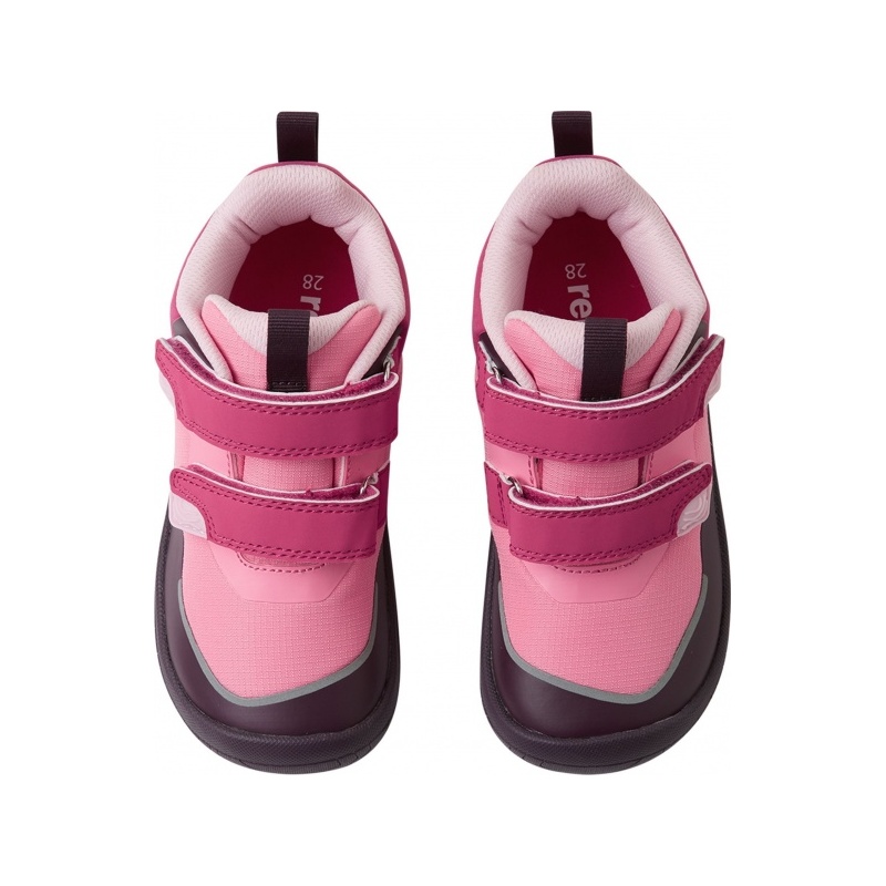 Let your child conquer new trails in the kids' ReimaTec barefoot shoes Viikari. These shoes feature a waterproof membrane to defy changing weather and a barefoot last with zero heel drop for a natural stance. The hook-and-loop construction makes them easy to put on. A flexible sole, wide toe box, and grippy rubber outsole enable unrestricted natural movement. Inside, removable insoles with Happy Fit print help find the perfect fit. Reflective details add visibility to their steps.