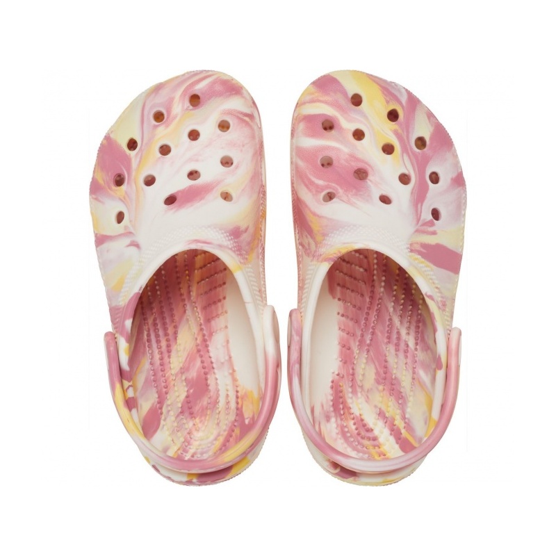 Sellel ikoonilise jalatsi versioonil on populaarse marmormustri uus pimedas helendav versioon, mis aitab lastel oma lõbusat ja loomingulist olemust näidata. See uus marmormustriga materjal Croslite™ loob täiesti ainulaadse pimedas helendava värviefekti. Kõik marmormustriga jalatsid on küll sama laineefektiga, ent iga king on kõigist teistest veidi erinev. Crocs pakub lastele ja väikelastele klassikaliste sandaalide mitmesuguseid erinevaid mudeleid, mis on originaalsete kujundustega, aitavad lastel end väljendada ja uusi sõpru leida, muutes seega väikeste elu lõbusamaks.