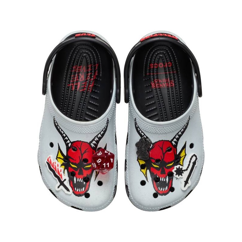 Sina ja sinu klubi näete välja kuumemad kui Hellfire, kandes Stranger Things Hellfire Classic Clog laste mudelit. Austades klubi kirevat seltskonda, on klotsidel deemonlik raskemuusika stiilis logo ning neli ainulaadset Jibbitz™ kaunistust - sealhulgas d20 täring, metallist draakon ja palju muud. Alusta iga seiklust selle ikoonilise mudeliga.